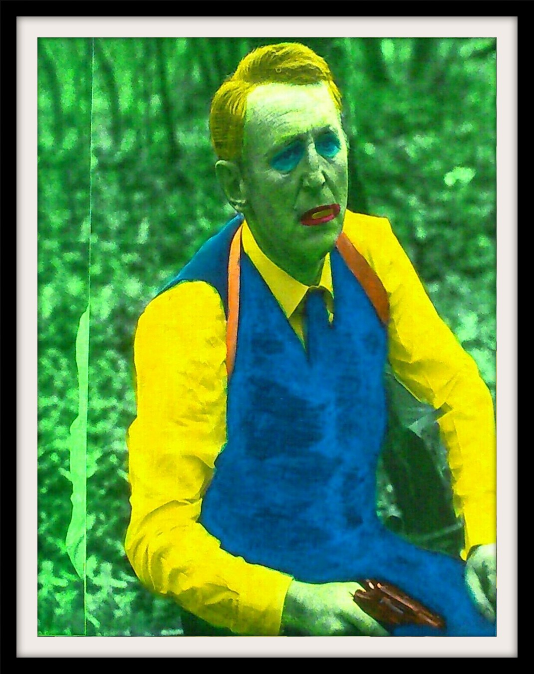 Bonjour Thierry, Bourvil, un Artiste dans tous les sens du terme! Si grand!! Là, avec ces couleurs, il ma fait penser un peu au joker, à la fois triste, mélancolique et amusant... A l'image de son talent... Bonne soirée Thierry!