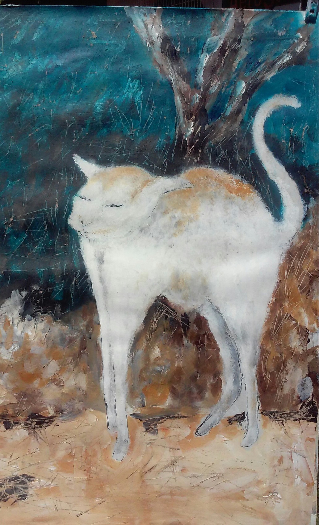 Petit détournement de la toile de bonnard (Agrandissez, vous verrez de quoi ce chat est capable) Acrylique 50x60 sur papier recyclé