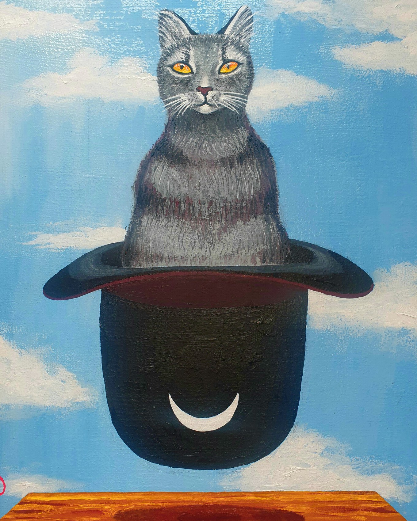 Le chat dans le chapeau Magritte Huile sur Bois 40 x 50 cm
