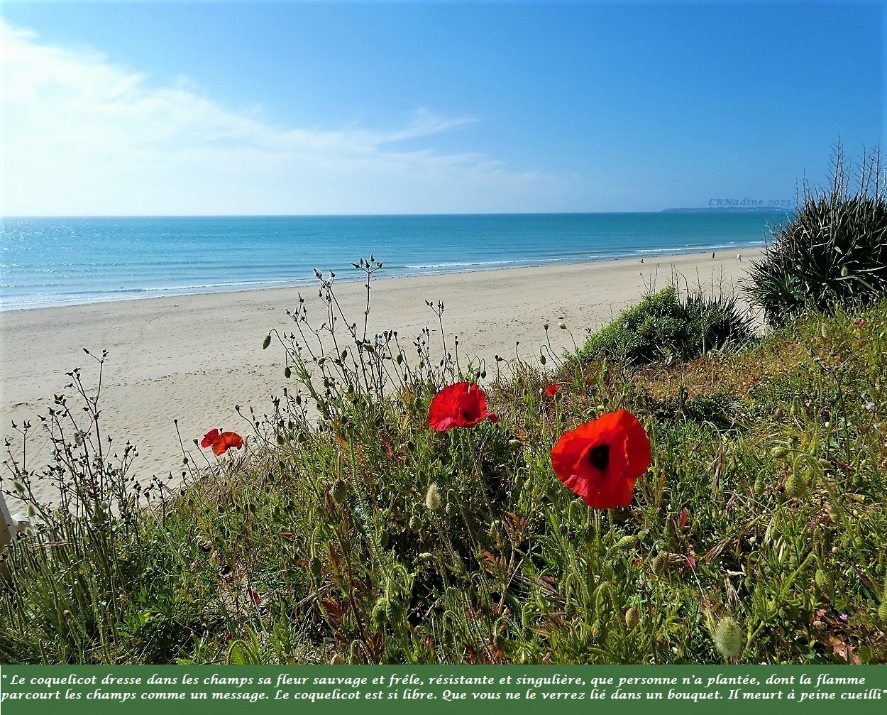 Coquelicots rouges, mer bleue et sable fin ça fait envie. Merci