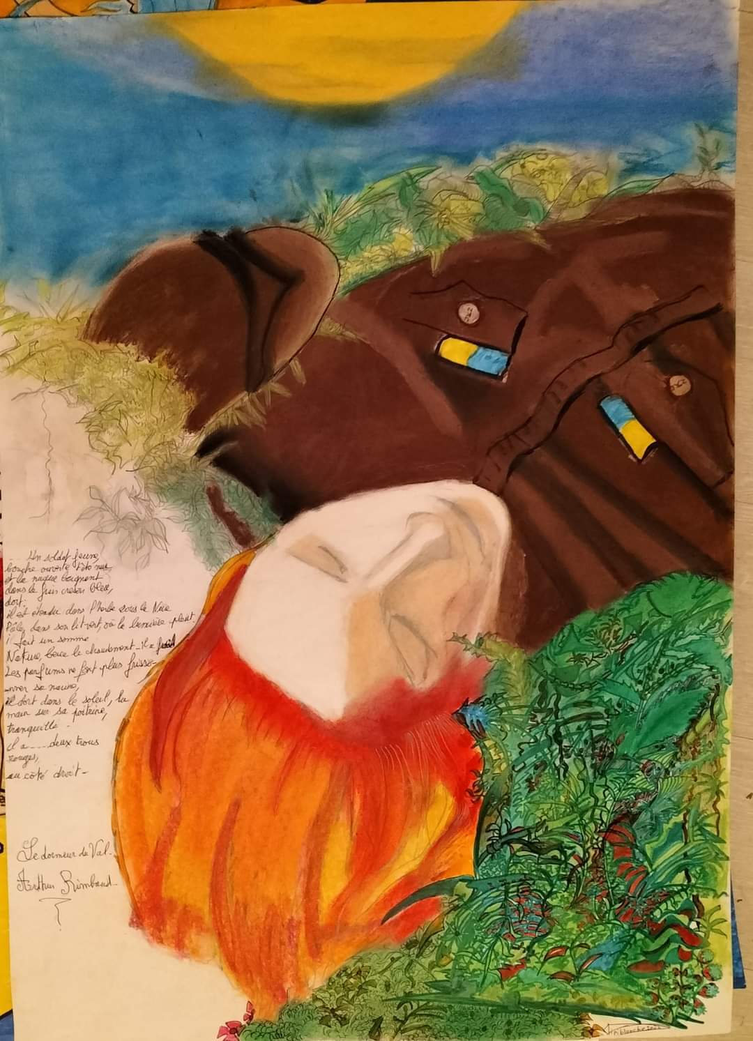 Craies ,feutres,crayon. Sur papier 60/80cm En hommage aux soldats d'Ukraine
