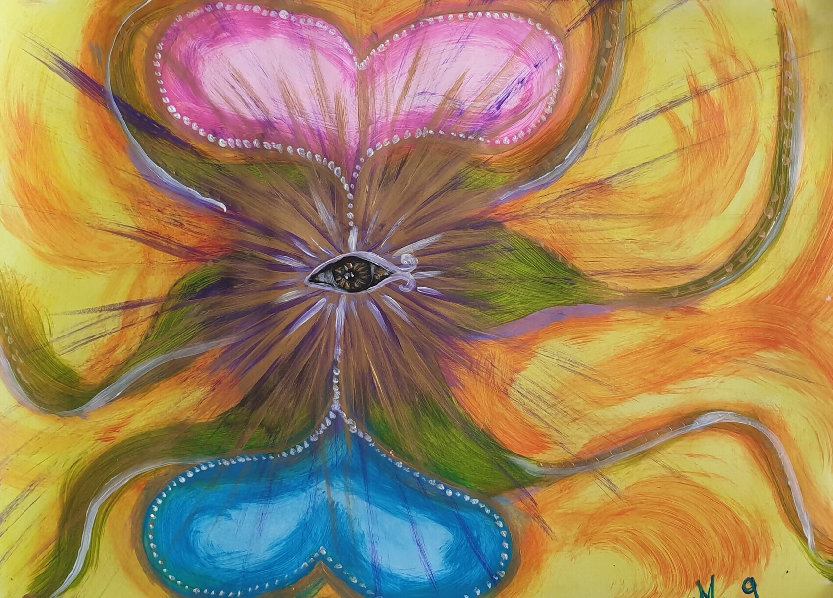 Peinture acrylique sur feuille de dessin.. Le chakra sacré.. 2ème chakra.. celui du désir.. du plaisir.. de la sexualité