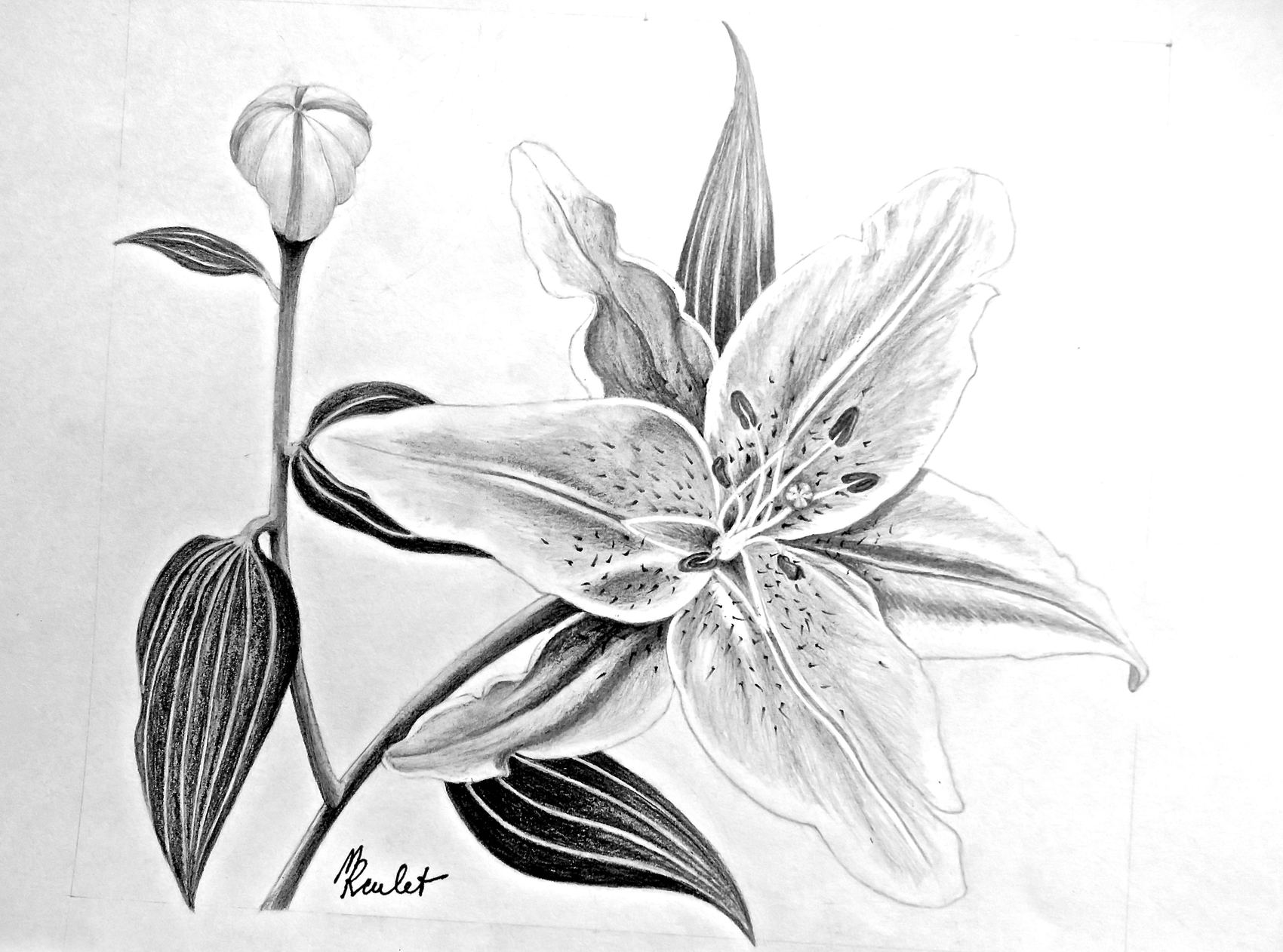 Crayon, décembre 2014, 23 x 32 cm. Dessin au crayon d’une de mes fleurs préférées qui symbolise l’affection et la tendresse. Artnaturl, FLORE, fleur, lys, Muriel REULET.