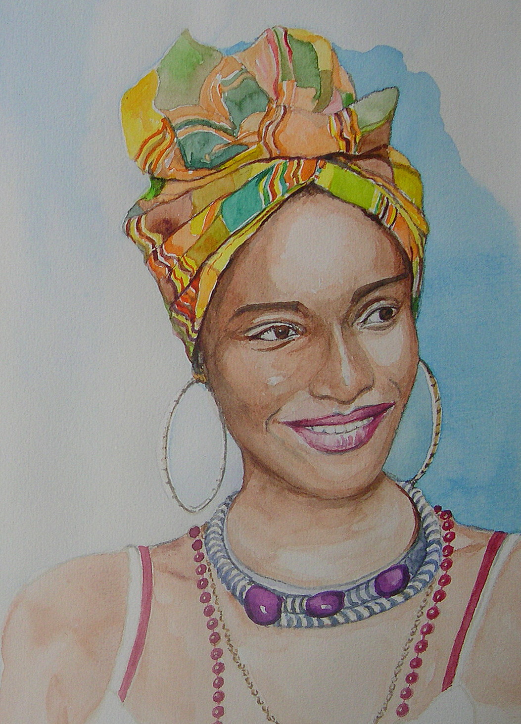 Antillaise avec sa coiffe en madras. Aquarelle.
