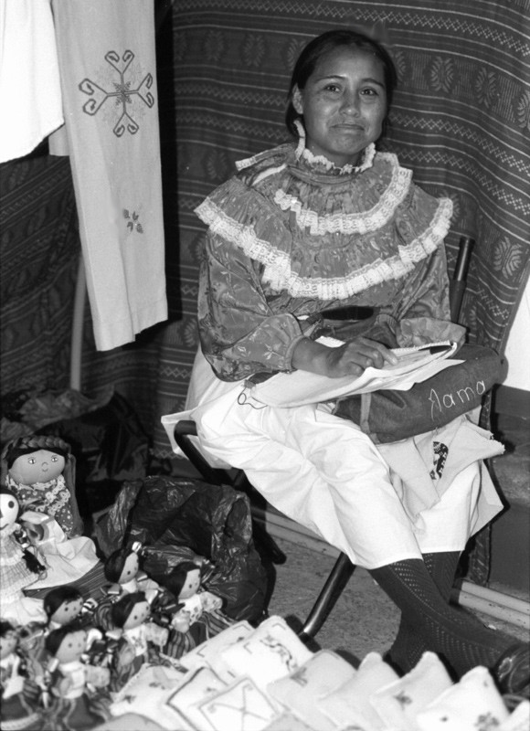 Indienne Huicholes au milieu de son artisanat (photographie argentique)