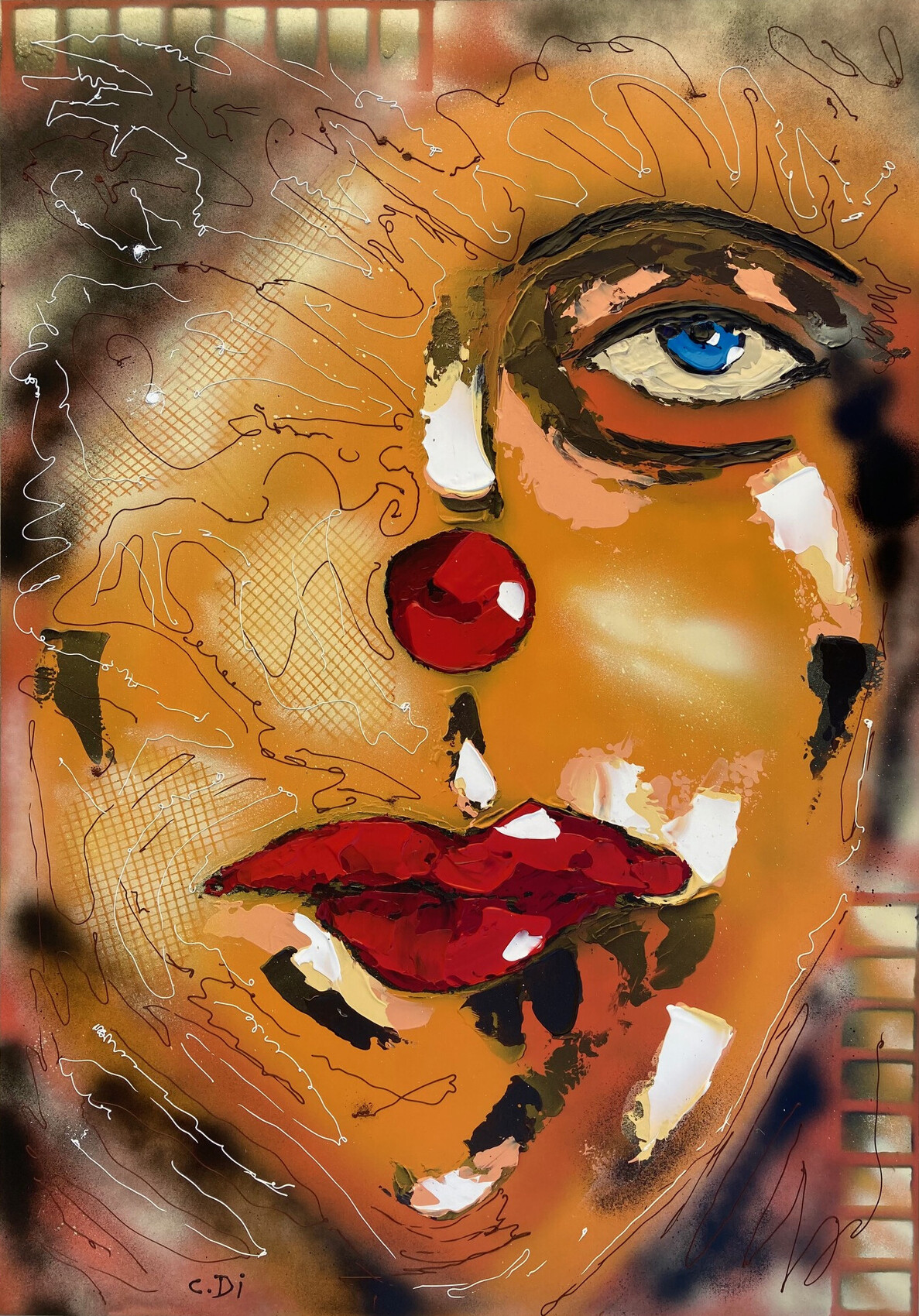 Une reprise en douceur !! Le masque d'un clown, Acrylique/bombe sur plexiglas 100cmx70cm ++