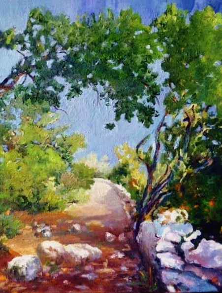 très belle lumière sur ce chemin et les pierres blanches du muret, ravissant