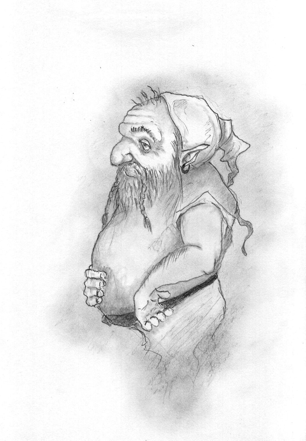On sent qu'il a du mal à digérer un truc. Il n'a pas bonne mine pour un nain. Sympa ton dessin :)