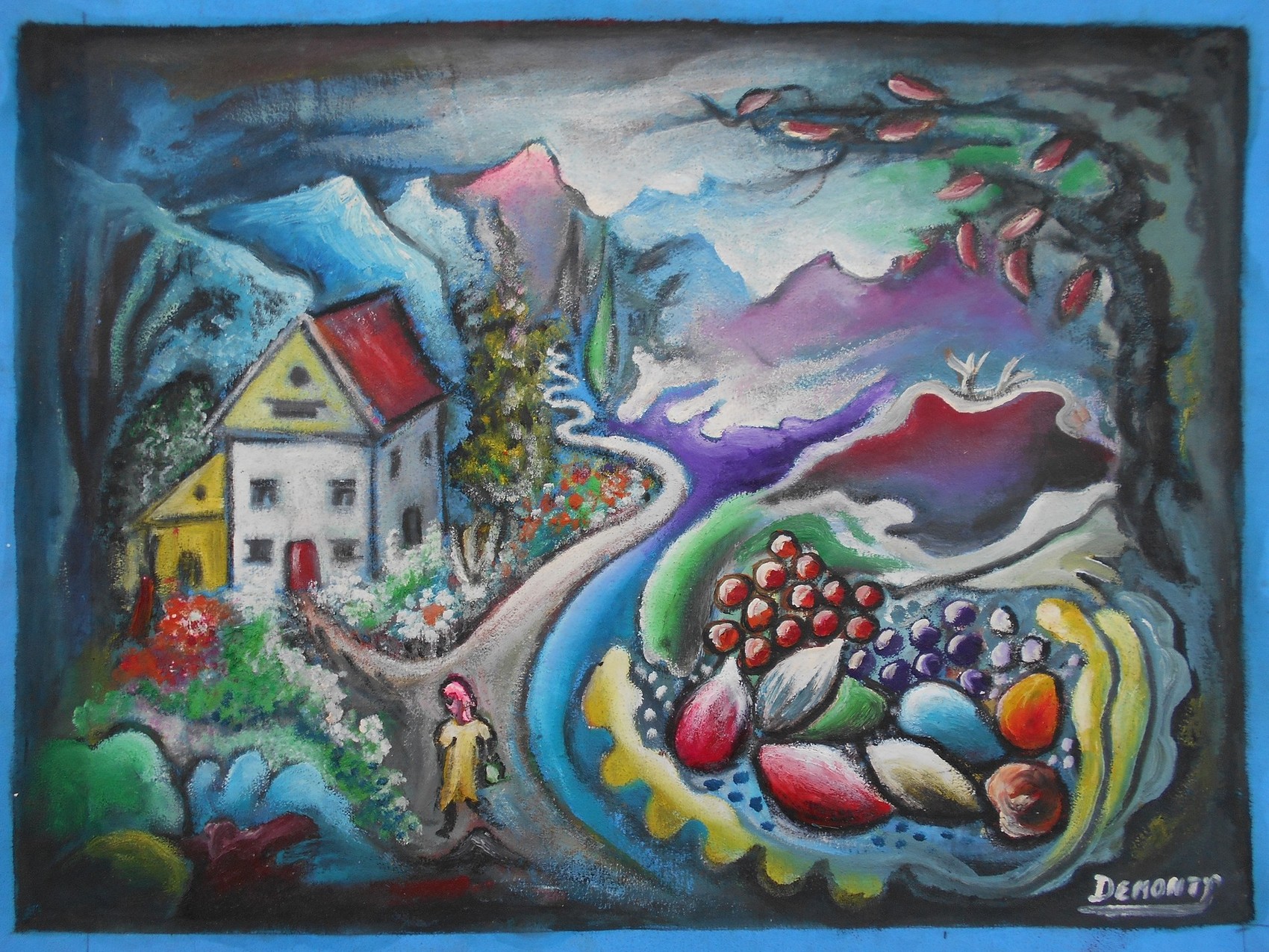 Peinture a l huile sur toile 96 x 65 cm signée Demonty
