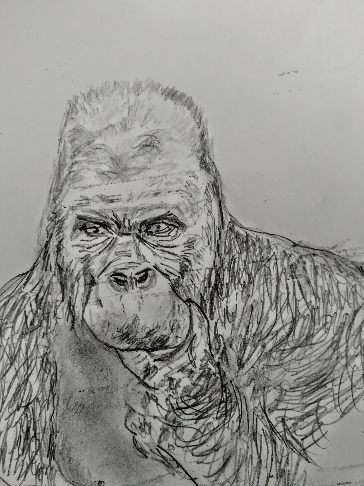 Salus, oui, ça se voit, que notre cousin, est vraiment plongé, dans ses pensées, du genre se disant : "je dois prendre mes dispositions, contre mon cousin humain, qui se prend, pour un "dieu", allez moi et mes semblables singes, on doit détrôner notre couz humain, et régner en maître ! , bravo un portrait d'humour intéressant.