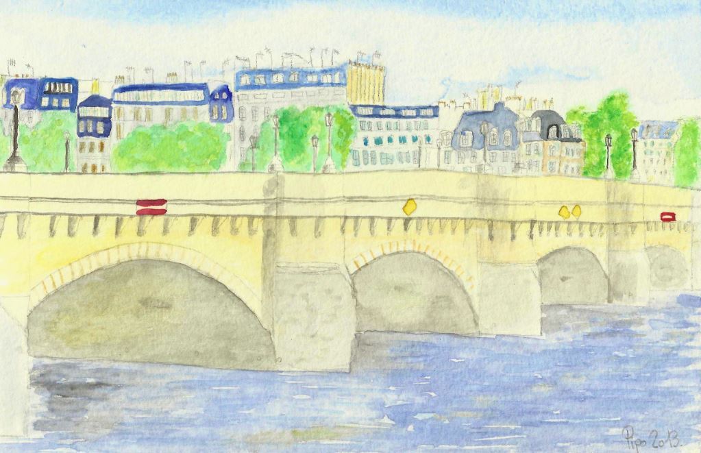 aquarelle 14 sur 21 cm - papier Montval 300g- D'après photo 'le pont neuf" wikipédia, libre de droit. -toutes mes aquarelles sur mon site !