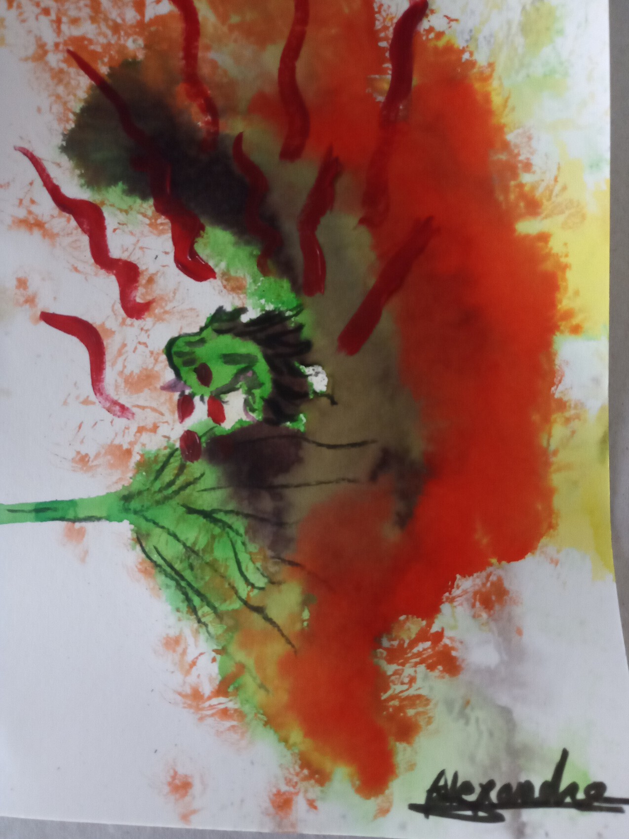 Moi je vois un dragon en train mettre du feu partout ! Allo Maya toujours autant d'imagination débordante :-)