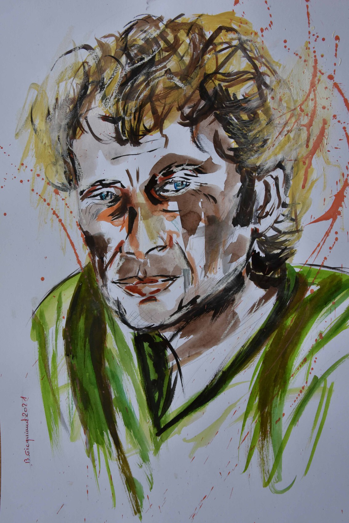 JOHNNY dans sa jeunesse - peinture aux encres sur papier blanc format A2