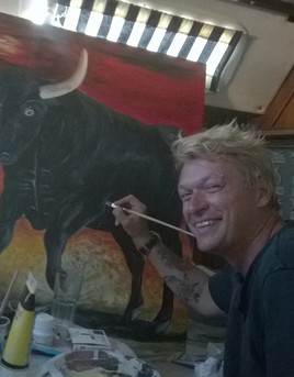 peinture acrylique sur toile 100 x 70 le toréador (tableau 1) face au taureau ( tableau n°2)