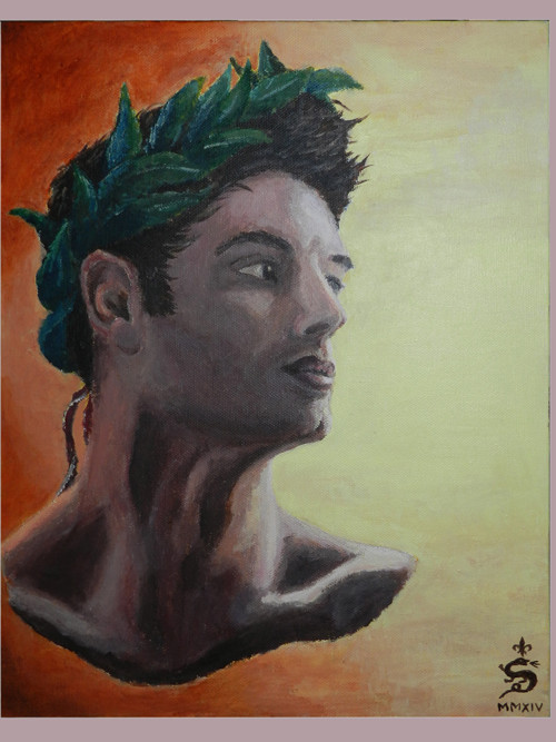 "Le Vainqueur" représente un portrait académique d'un jeune homme couronné de lauriers. Peinture acrylique sur châssis entoilé coton. Signé sur l'œuvre avec la signature rébus de Lysalamandre avec la date. Dimensions: 41 x 33 x 3,5 centimètres (F6) La tranche est peinte se qui permet d'accrocher la toile sans cadre. Vendue