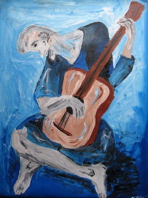 Peinture acrylique sur toile coton d'après le vieux guitariste aveugle de Picasso.