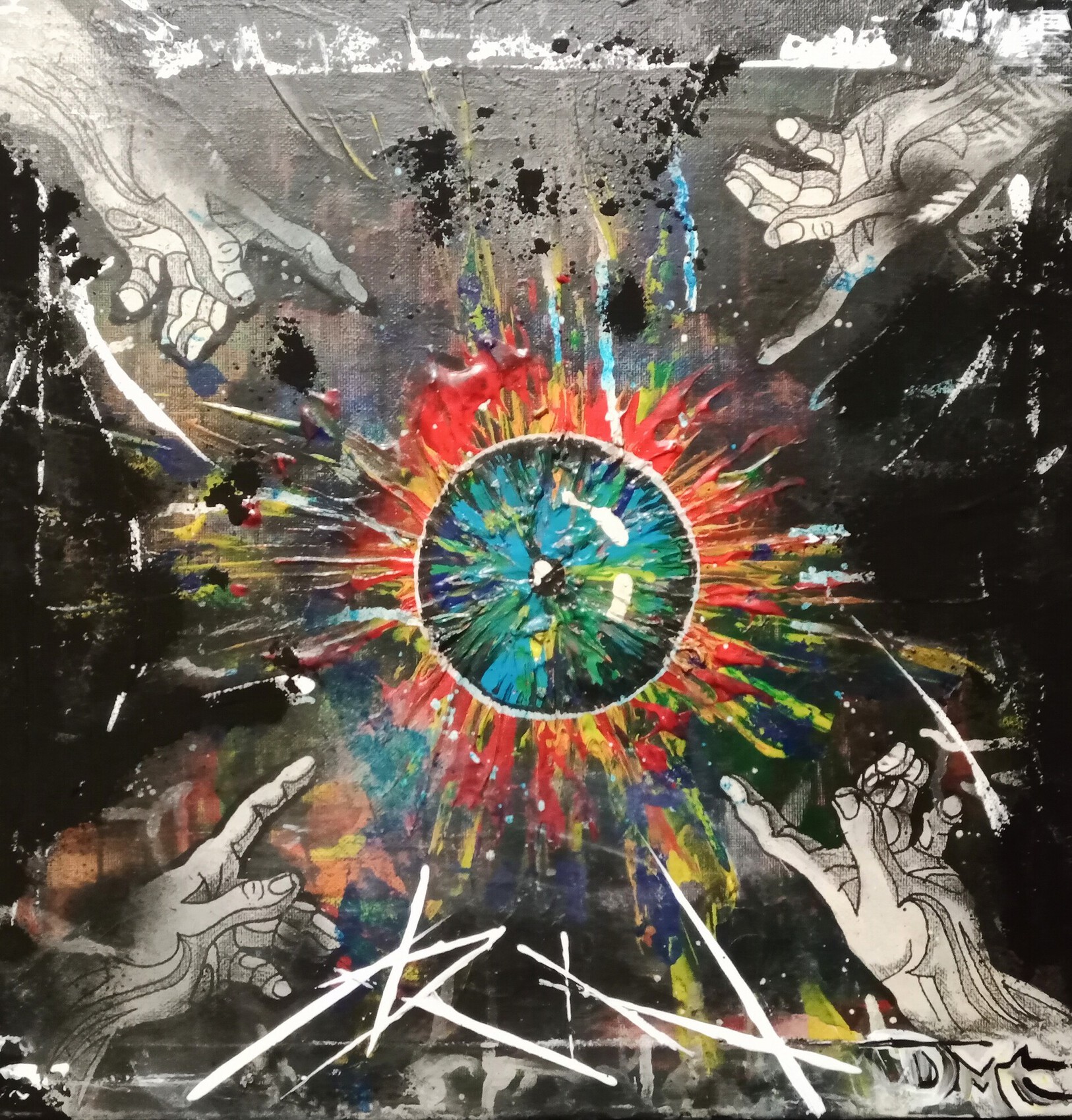 Acrylique sur toile au format 40 ×40 cm 2021. Et je ne suis pas le seul… Encadrement américain. Encours. Finie en 2024.
