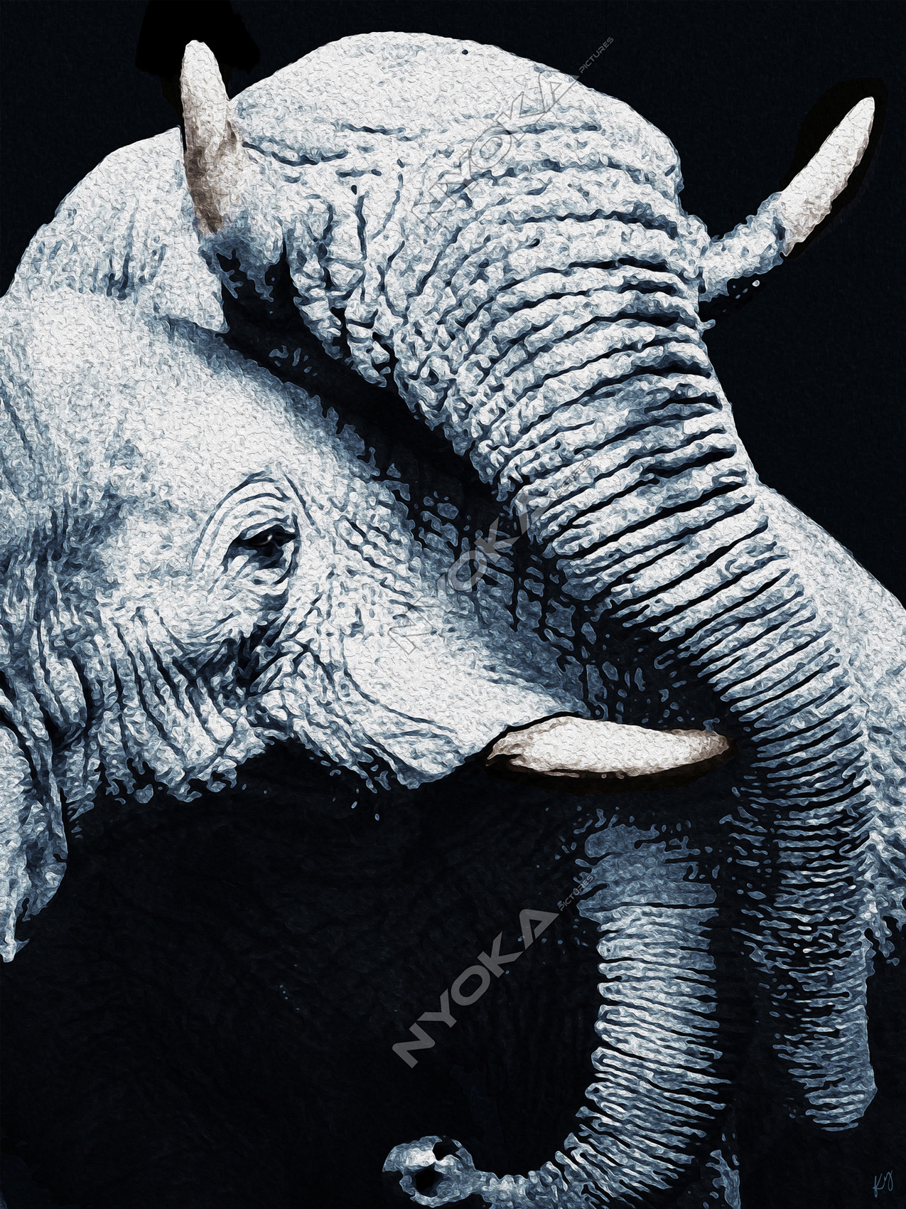 Dessin d'après une photographie et traitement informatique 12 filtres Taille 9000 L x 12000 H : modèle unique en vente (prix communiqué sur demande)