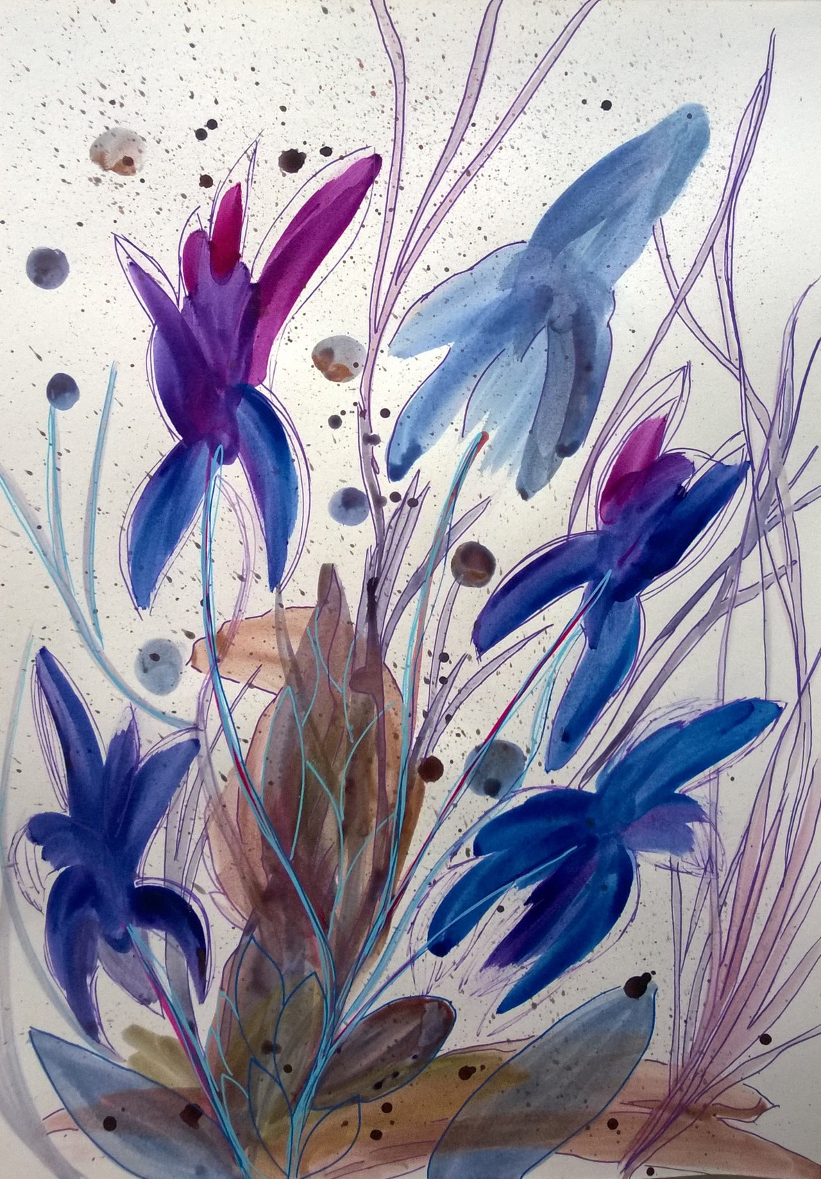 Fleurs abstraites aux Encres et acrylique sur canson 29.7 x 42 A encadrer