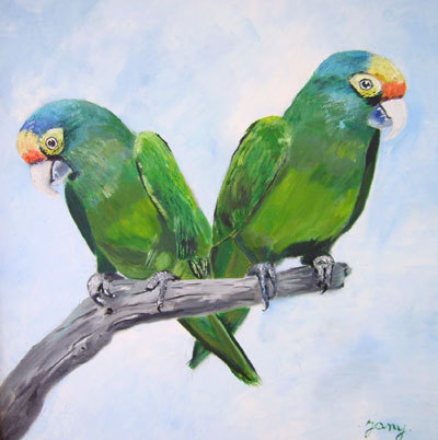 Les inseparables sur toile a l'huile. de dimmension 40x40