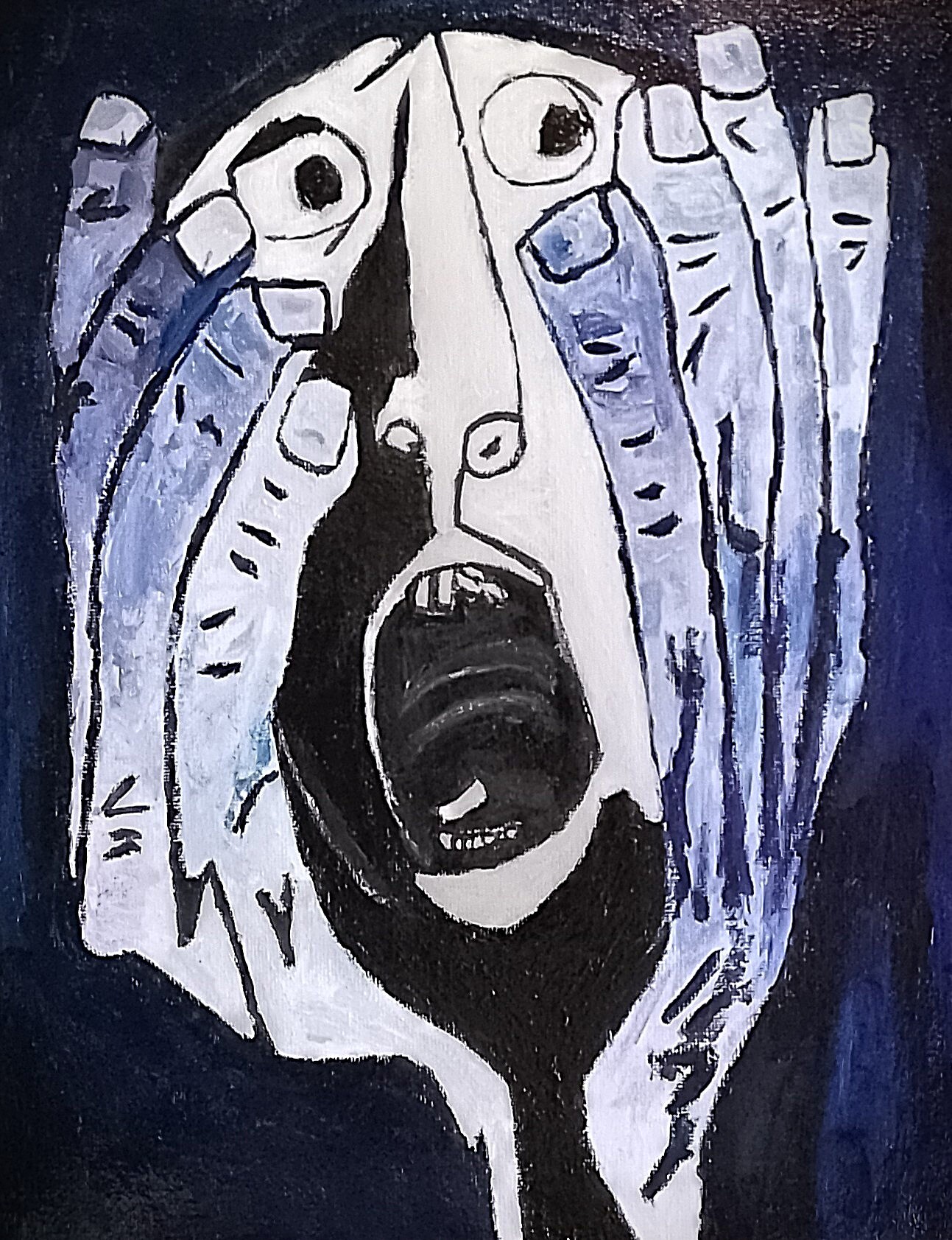 Les Mains de la Terreur. Acrylique, toile carton 30 × 24 cm. Hommage à Oswaldo Guayasamín (1919-1999) Les Mains de la Terreur symbolisent la peur qui s’insinue, l’angoisse qui étouffe. Elles surgissent de l’obscurité, traces d’un pouvoir invisible, mais oppressant. https://www.artpal.com/cothy-art1