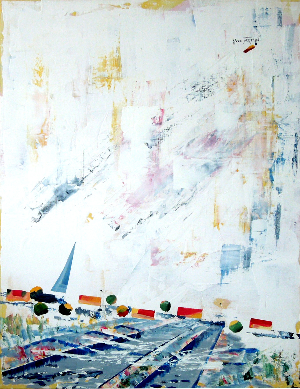 Ce que j'ai dis, ce jour, à ton encontre ... sur ce tableau "Frémin, toujours à la recherche de la décomposition géométrique issue du cubisme, forçant le paysage qu'il rencontre à devoir répondre à un équilibre précis entre désordre mesuré des aplats de fond de toile et l'ordre des formes géométriques que le peintre dépose comme autant de semis que le jardinier implante" ...