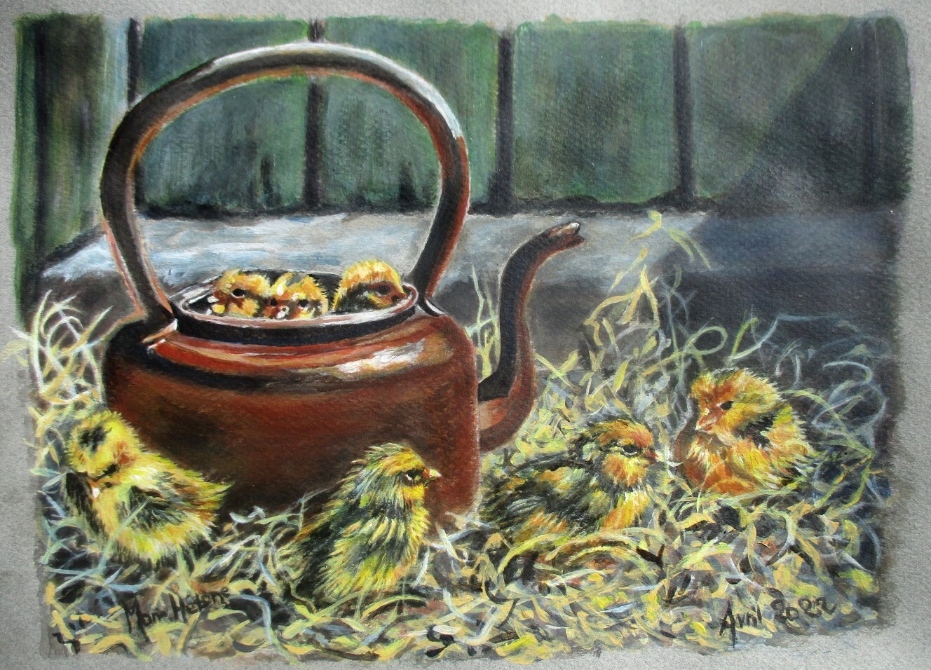 J'adore ces poussins, ils sont trop bien faits, et la bouilloire très réaliste, quel talent !