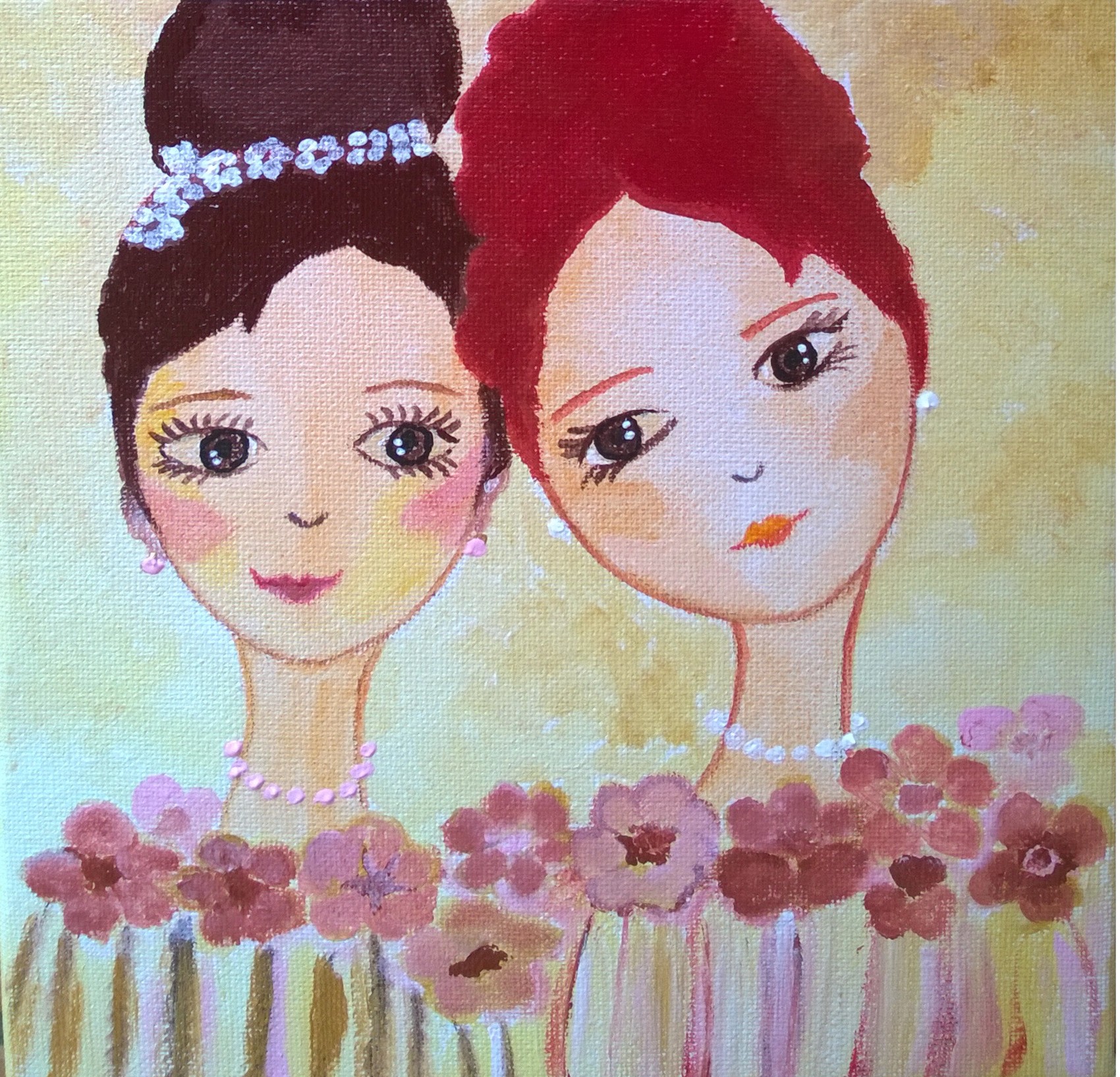 Des soeurettes, des jumelles mêmes! J'adore leur mince cou élancé orné d'un collier de perles, leur boucles d'oreilles discrètes, leurs beaux yeux pétillants, la forme de leur visage, leur fines bouches, c'est trop mignon Ysis comme à chaque fois!