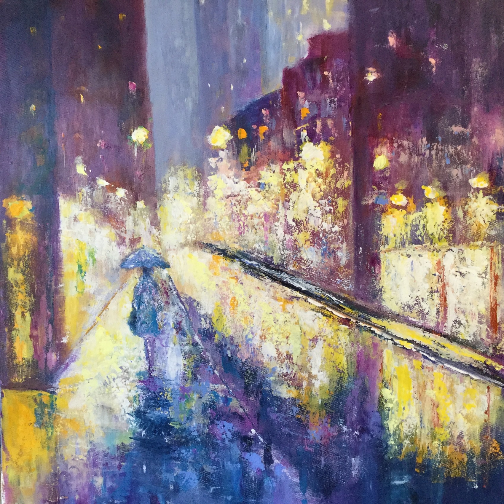 Bonsoir Anne, pour moi; de toutes tes jolies toiles, ce sont celles de rues sous la pluie qui me plaisent le plus. Par le rendu, d'une part et puis Je peux y entendre les douces notes des gouttes tombants sur le bitume .Belle et douce nuit à toi, bisous, Dominique.