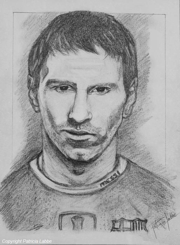 Portrait de la star de football Lionel MESSI. Commande d'après photo, au crayon.