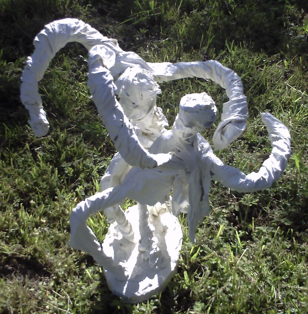 sous un autre angle, ciment blanc, fil de fer et tissus.