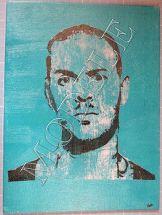Portrait sur carton toile-fait main-peinture acrylique fond bleu, motif M Pokora transfert d image collé: haut 24cm, large 18 cm Parfait pour encadrer. Travail soigné des détails pour un rendu effet reel maximal; Chaque création est unique puisque faite main- Création signée. Reproduction interdite. En vente sur priceminister : http://www.priceminister.com/p/cobweb et a little market:https://www.alittlemarket.com/boutique/scrapoupoune-2671463.html