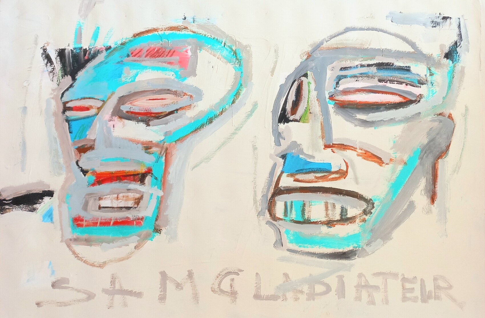 Art-Sourd 117x80cm acrylique sur carton signé Sam KEUSSEYAN-Gladiateur Livraison inclus 06 25 20 02 02 keusseyan1980@hotmail.com