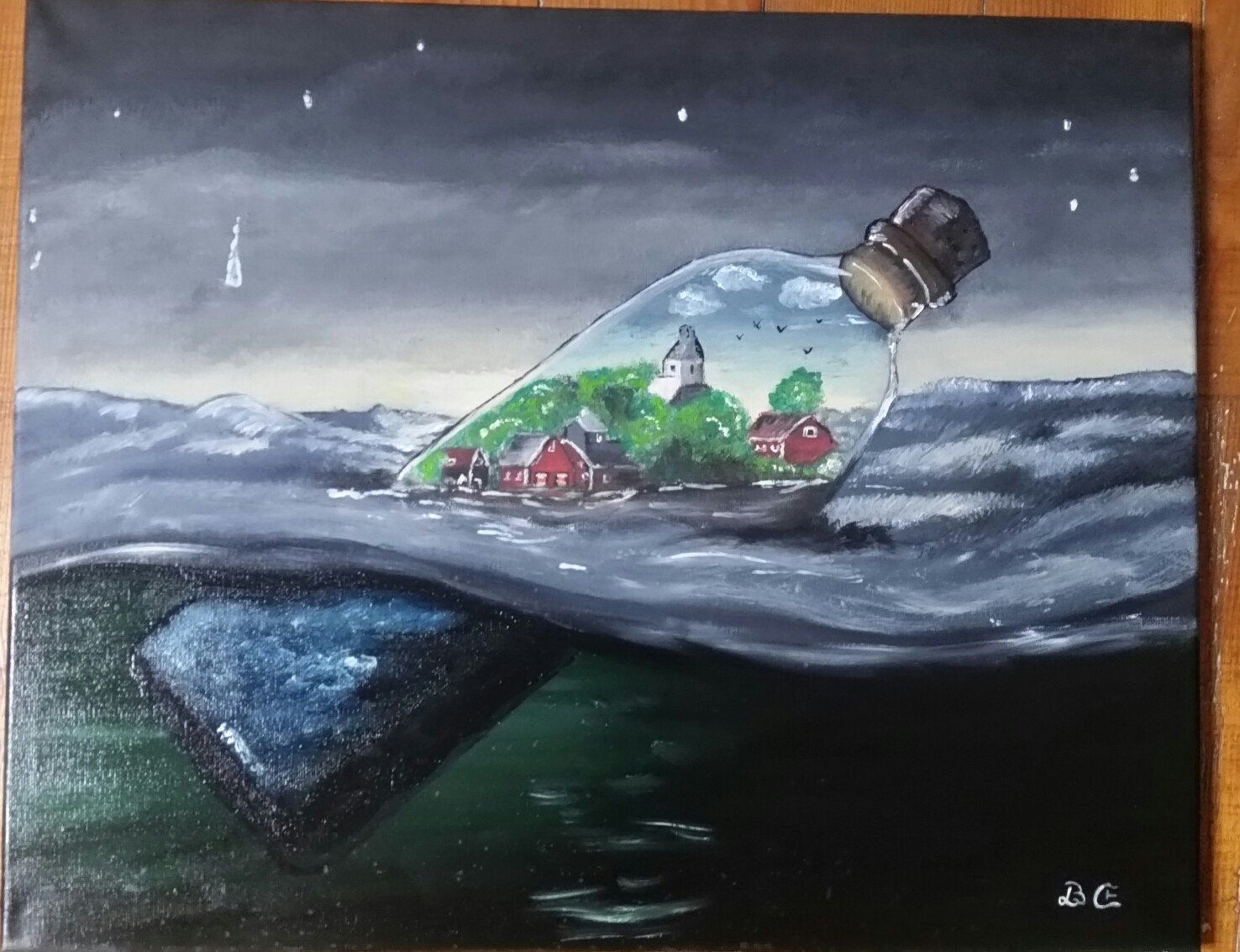 Ma petite bouteille à la mer. Peinture à l huile Technique alla prima. .. Faites en 3 jours Sur une toile de 40×50 cm
