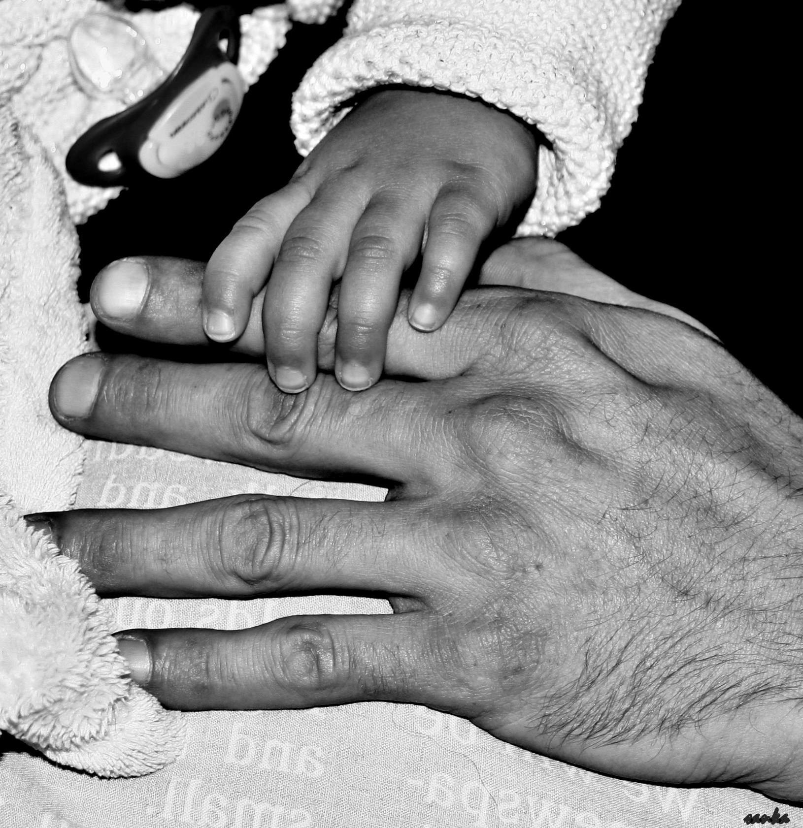 Très belles mains, la petite sur la grande comme pour s'y accrocher ou la caresser, beau titre aussi pour les mains travailleuses, la main outil, la main comme le lien il suffit à nous de la tendre, "l'union fait la force" ! bravo pour cette photo touchante !