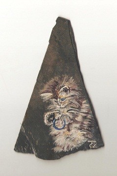 Peinture acrylique sur ardoise - Le pelage de ce chaton m'a bien amusé et la composition encore plus !
