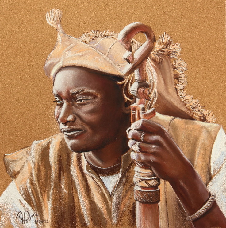 Merci à tous pour vos encouragements. Un tel sujet c'est assez exceptionnel. Il est dessiné d'après la photo d'une amie, qui soutient le village de Diéou au Mali. Il s'agit de LASSINE dans son costume DOGON.