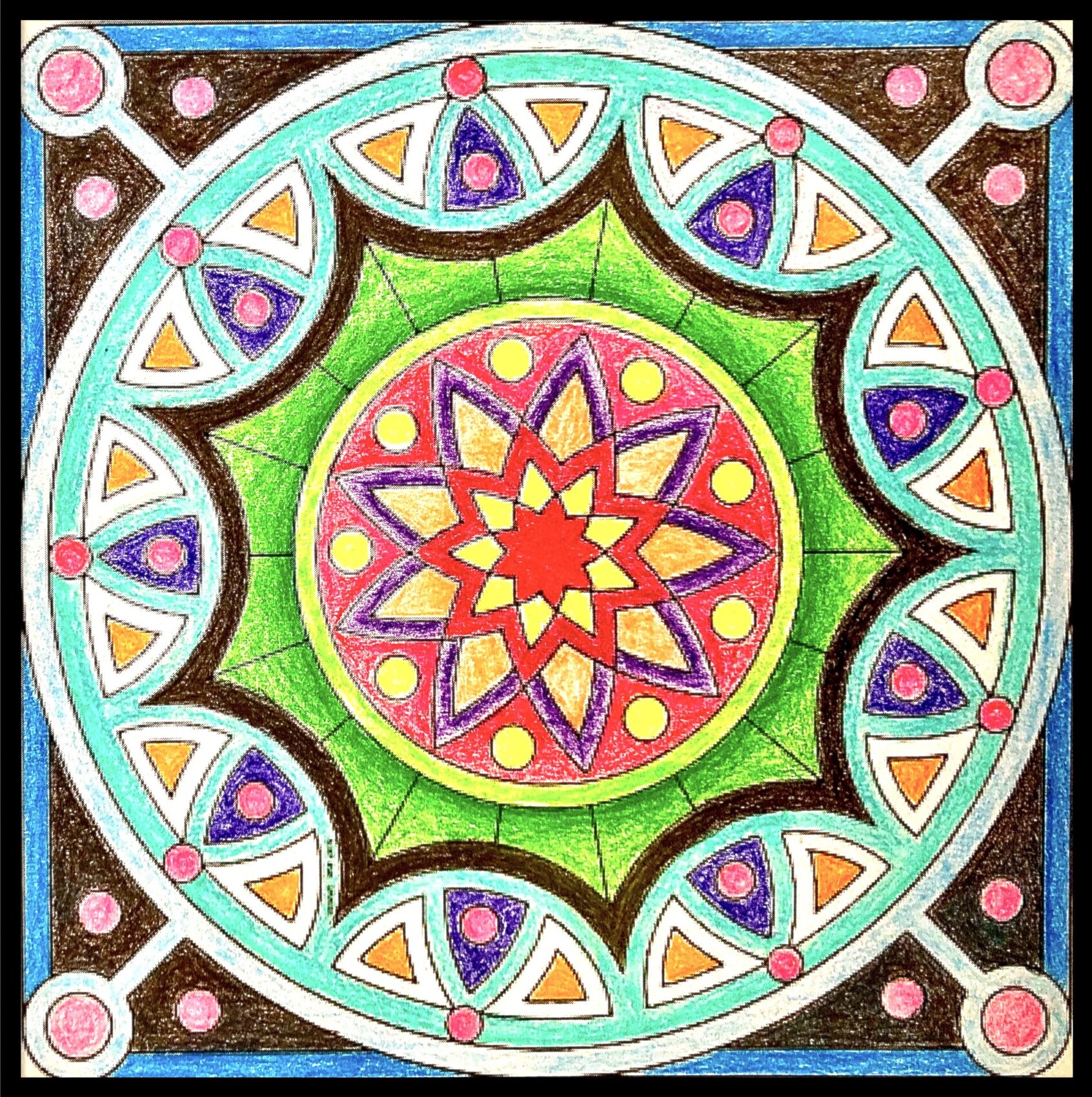 Mandala bleu turquoise rose / drawing Turquoise-pink mandala