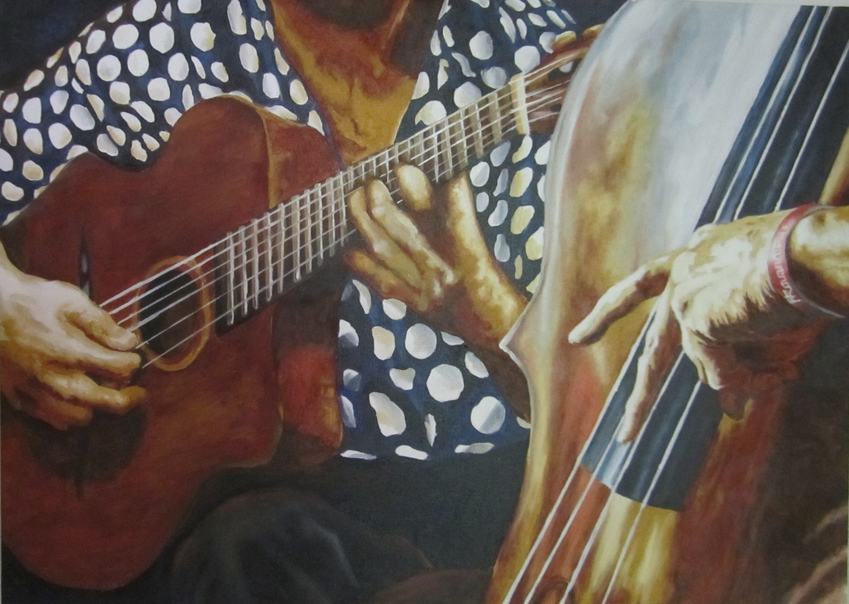 huile sur toile 50 x 70 cm Moment de jazz pendant un festival manouche