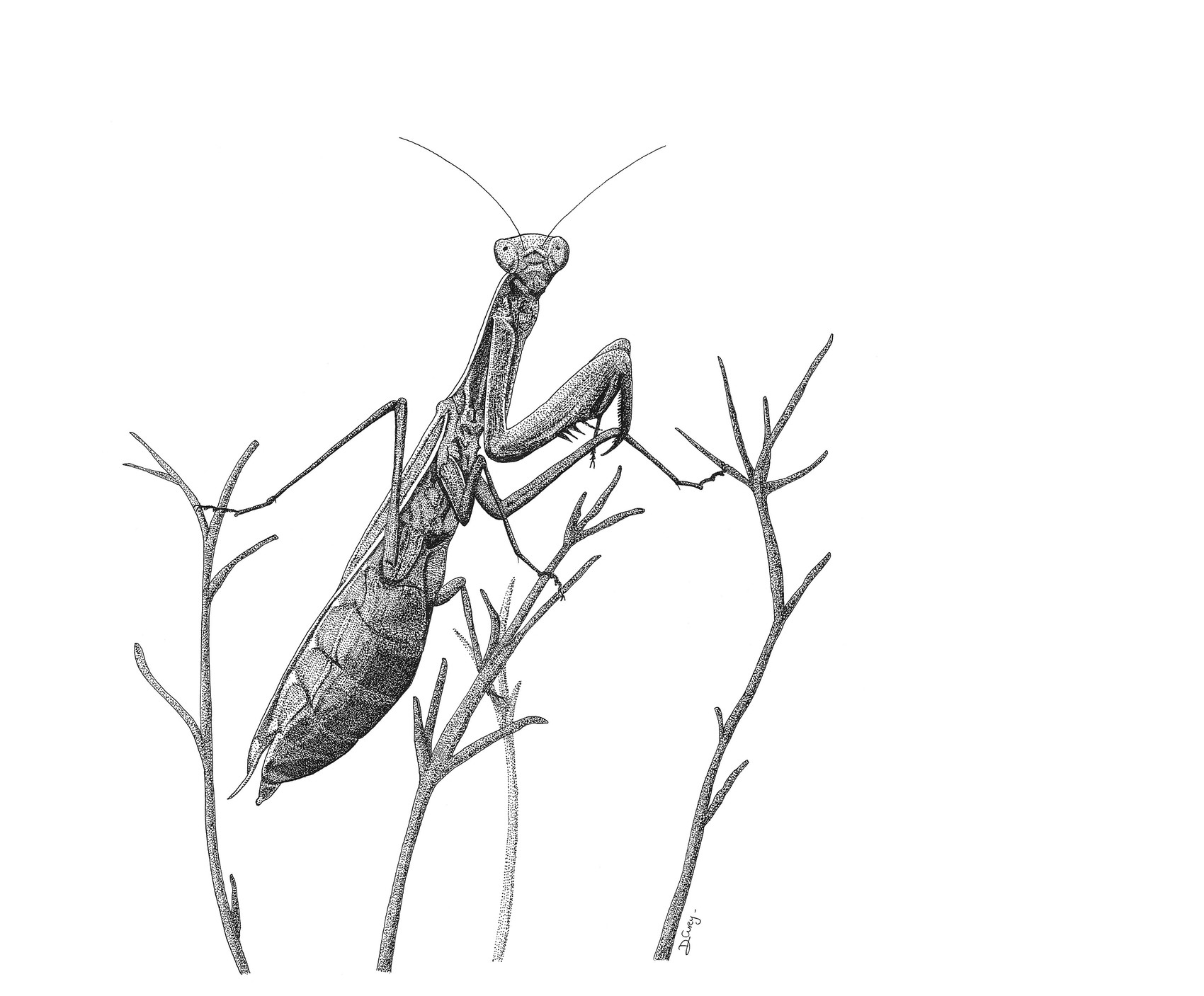 Belle prédatrice à l'encre de chine, d'après une photo de Florence Ballestracci.