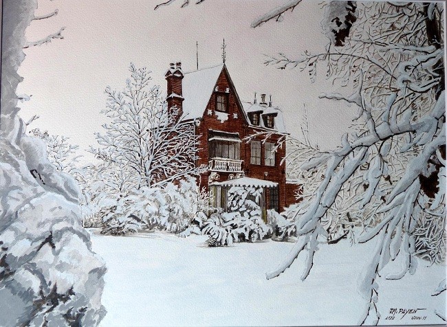 Cette charmante villa de Beauchamp a son histoire...! Aquarelle sur Conqueror 200g . 380x280mm.