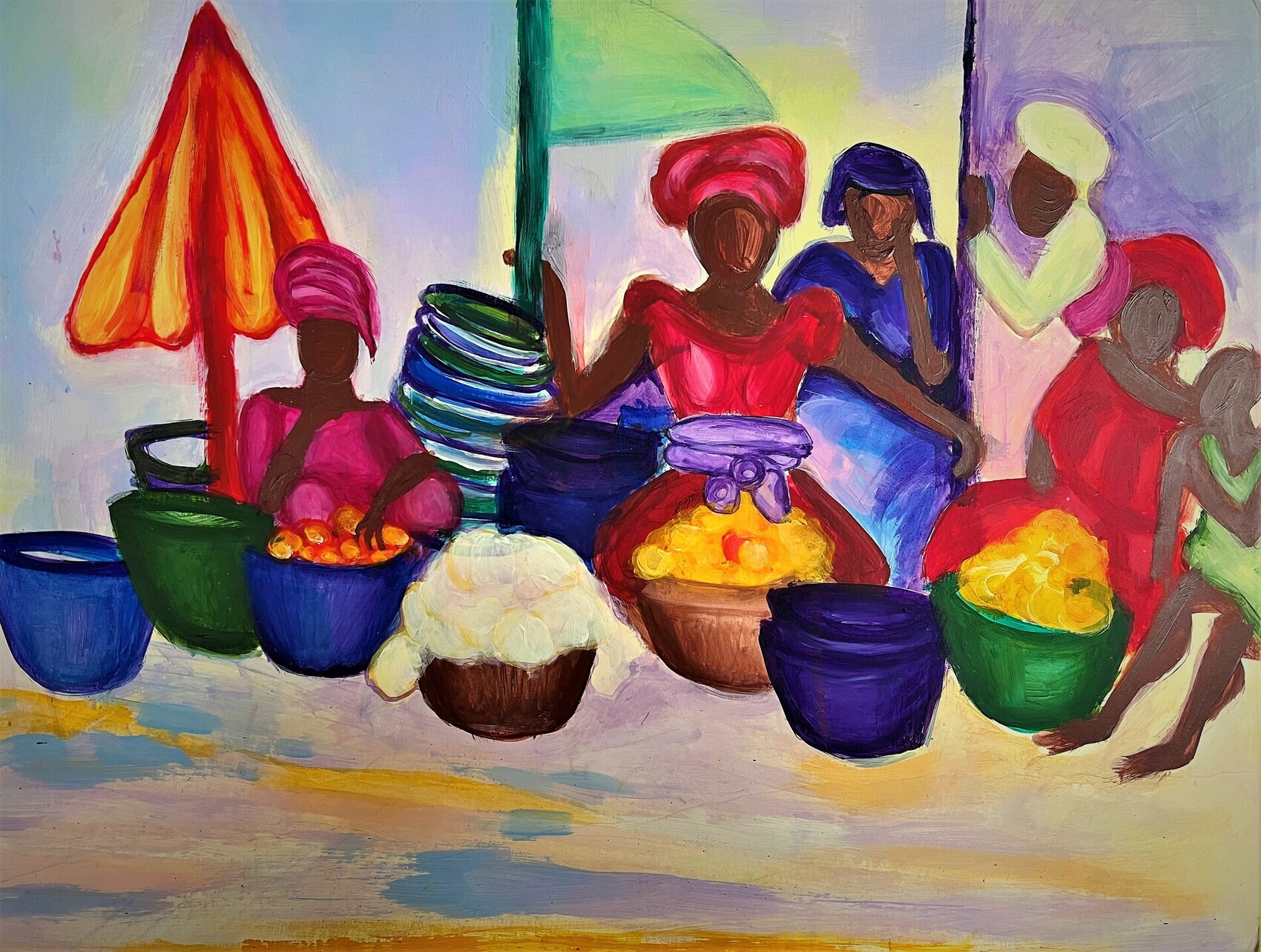 Acrylique sur carton réalisé en 2009 à partir d'une photo prise dans un marché au Sénégal
