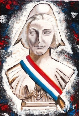 Elle incarne la République. Les premières représentations d'une femme à bonnet phrygien, qui représente les esclaves brisant leurs liens et qui deviennent citoyens. Toile offerte à la Mairie du Rouret