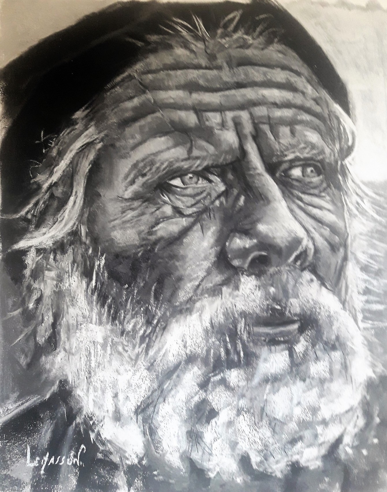 visage très marqué , regard lointain. Très belle oeuvre.