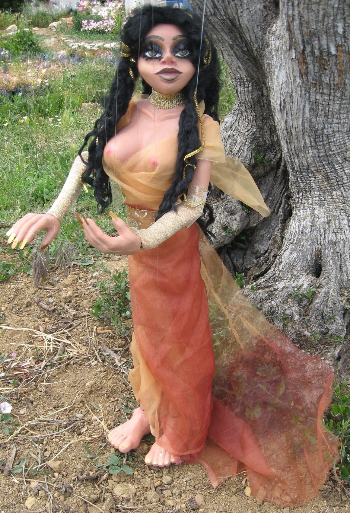 princesse orientale marionnette à fils de spectacle ou d'exposition Jean-François Gantner JfG racontart.fr composition papier maché, tissus, bois et ajout de matériaux