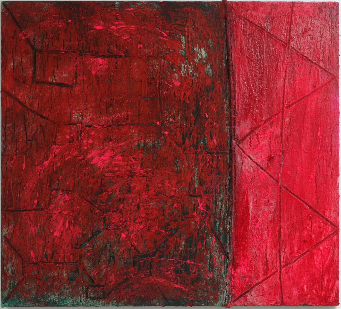 90 X 100 Mixed tar, oil and acrylic on old jute coffee sack www.behindangle.com