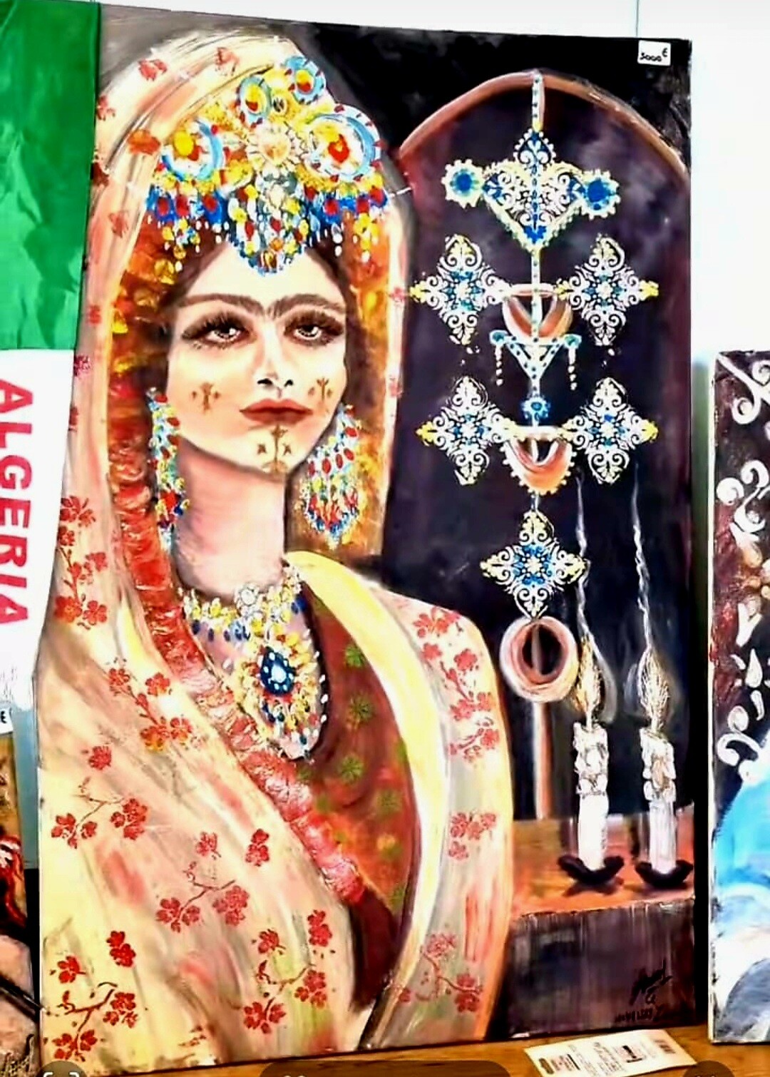 Un tableau contre le racisme qui unit toute la culture des Berbères d'Algérie et se distingue par la diversité de ses bijoux dans la beauté de l'est, de l'ouest, du sud et du nord du pays, fondé sur l'authenticité de la culture ancrée dans les entrailles. de la mère algérienne.