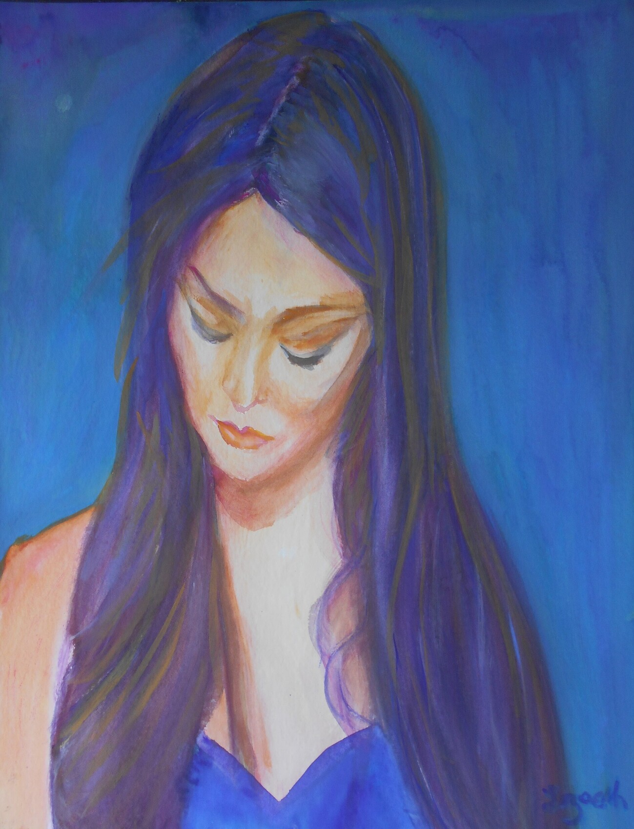 Il y a beaucoup de regrets et de remords , quand bien même on ne peut voir son regard, dans l'attitude de cette ravissante jeune femme, malgré son visage marqué ! les couleurs, en particulier les bleus, adoucissent la scène dramatique !!! Compliments jean Paul et bonne soirée