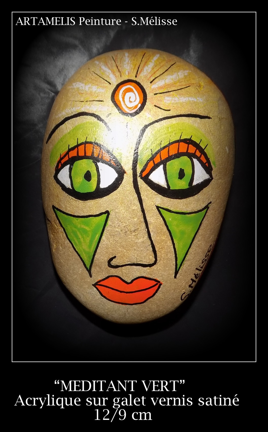 Galet peint à l'acrylique protégé de 2 couches de vernis satiné Model unique , numéroté et signé