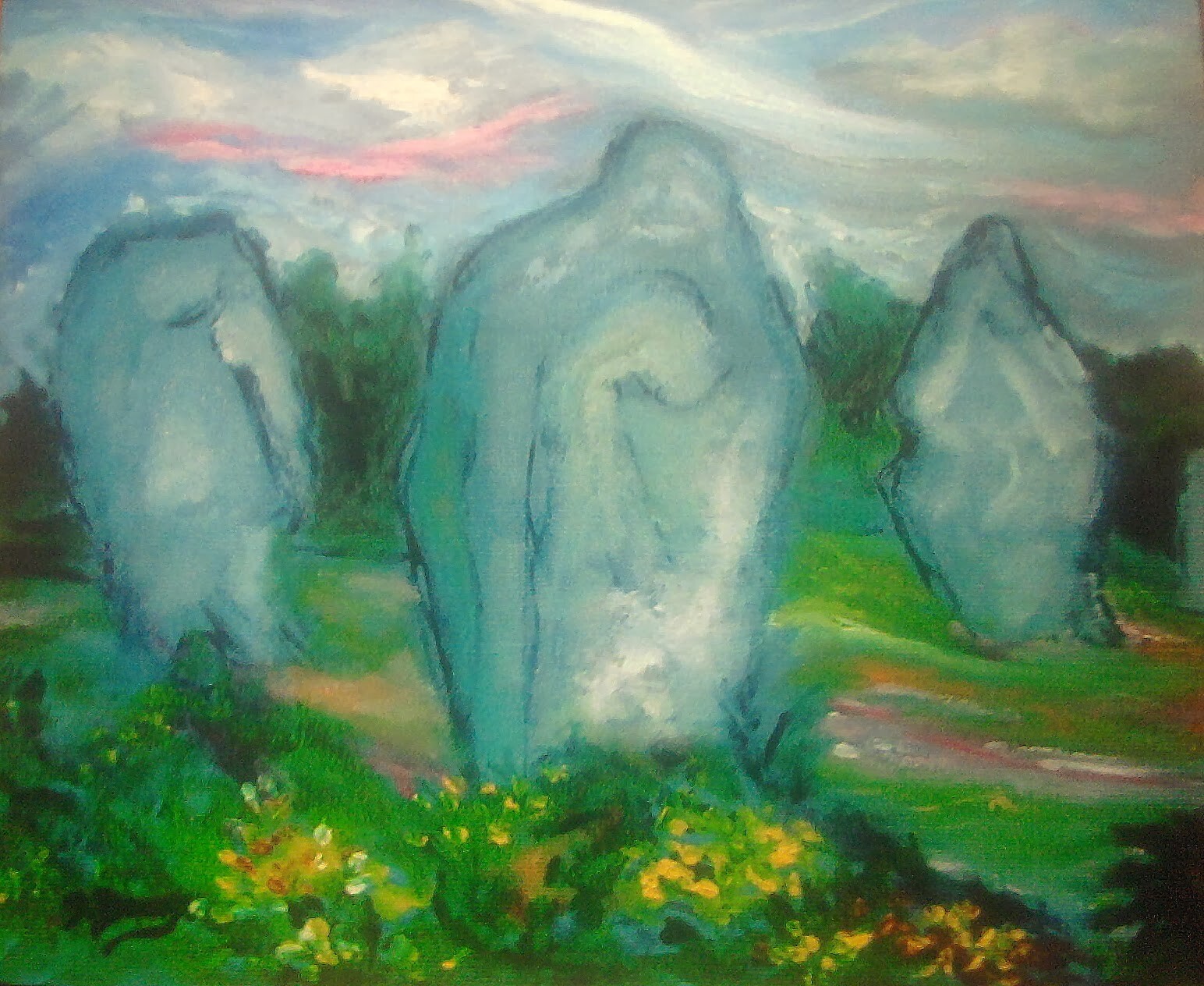Acrylique sur toile, Menhirs de Carnac en Bretagne.